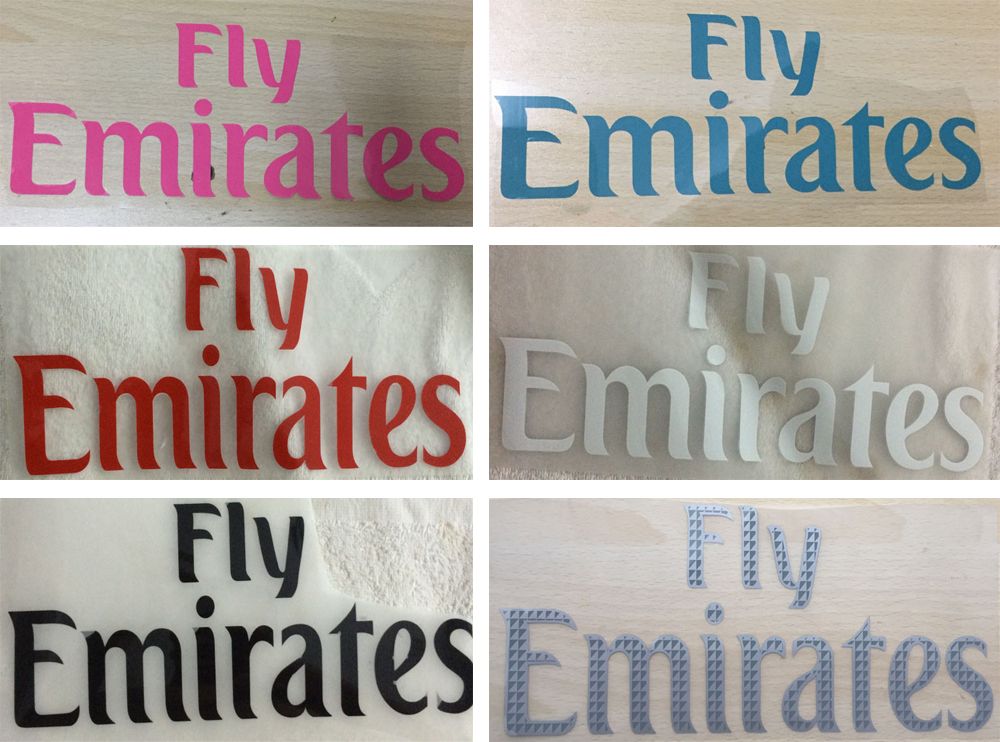 Fly Emirates Hot Stamping Front Sponsor Logos Pink Stickers Printing Armlets Football Badges Printed Armband White Impressed Soccer Patches